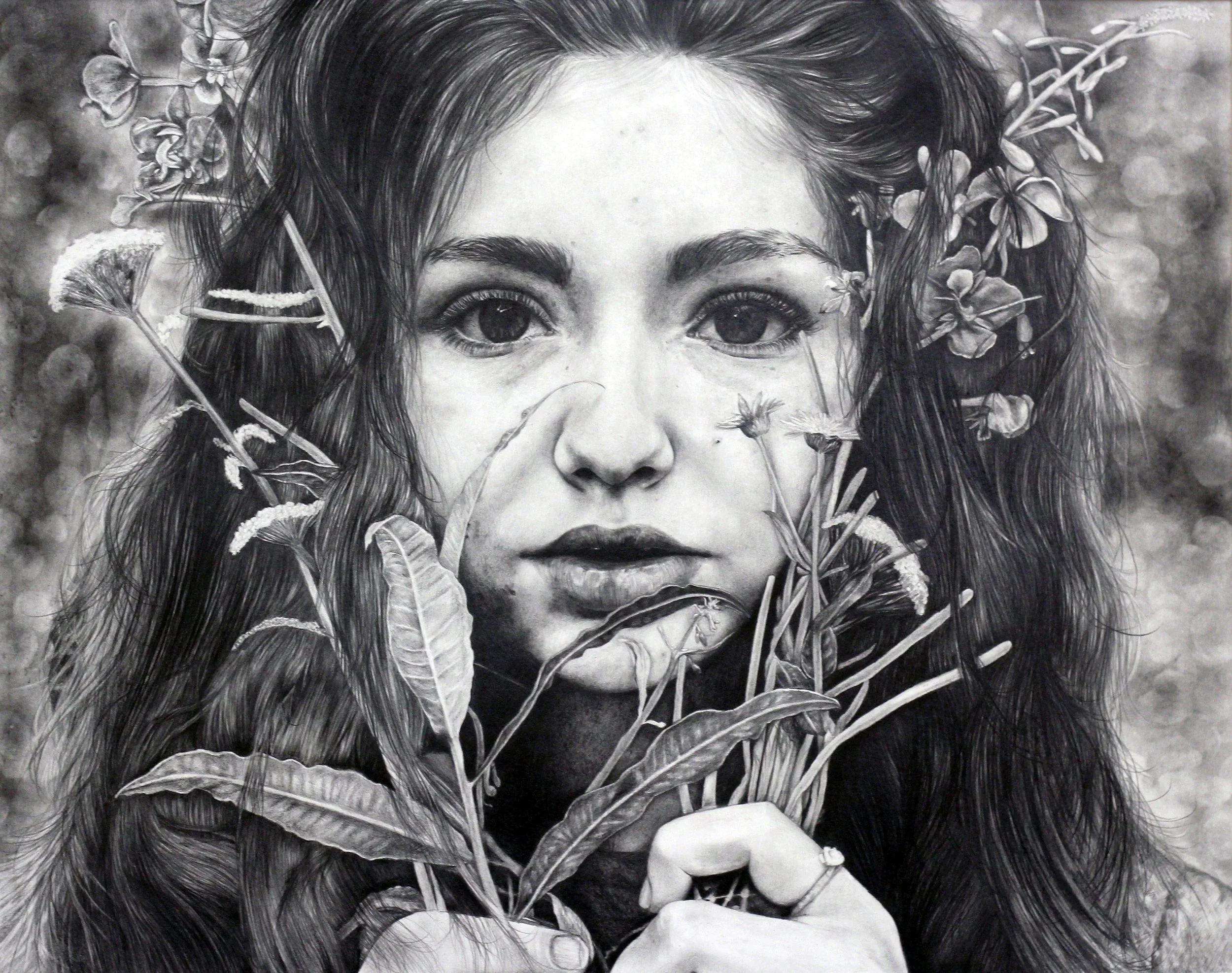 “Conversation With Marilyn” (2023) Charcoal on Paper, 4’x7’